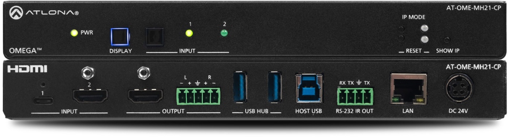 The Atlona AT-OME-MH21-CP is a compact, versatile switcher with HDMI and USB-C inputs. It is equipped with features for complete AV integration in huddle rooms and small meeting spaces, including automatic switching and display control, audio de-embedding, and a USB 3.0 hub for video conferencing peripherals or touch displays.Read More