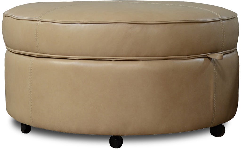 The round all leather Auden ottoman is a great accent piece for any contemporary or transitional room. This round ottoman has a removable lid to allow for extra storage for games, remotes, blankets, etc.—how convenient!Read More