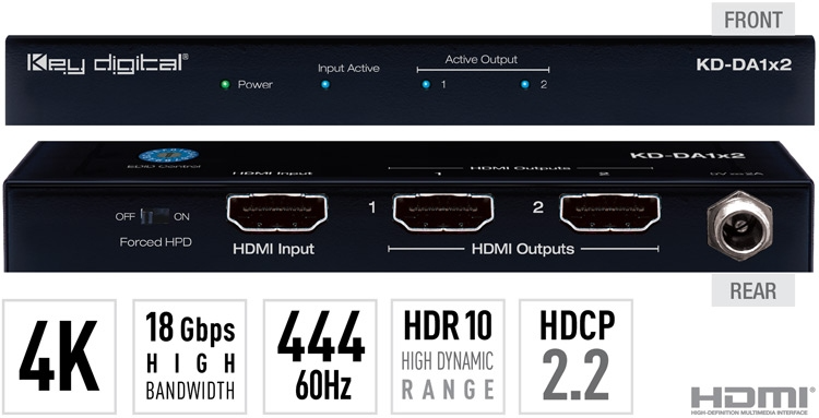 KD-DA1x2 HDMI Distribution Amplifier is designed and engineered to offer the best in quality, performance, and reliability, while providing a cost-effective, ultra-slim HDMI distribution solution. The KD-DA1x8 provides one input to multiple output HDMI distribution without signal degradation. KD-DA1x8 HDMI Distribution Amp supports SD, HD, VESA and Ultra HD/4K.Read More