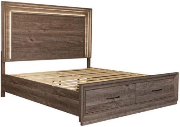 The Horizons storage bed is the perfect addition to any room. Crafted with a rubberwood solid frame, this piece features a unique floating panel headboard, hook-on rails, two drawers, and inset LED lights, all anchored by a beautiful plinth base.Read More
