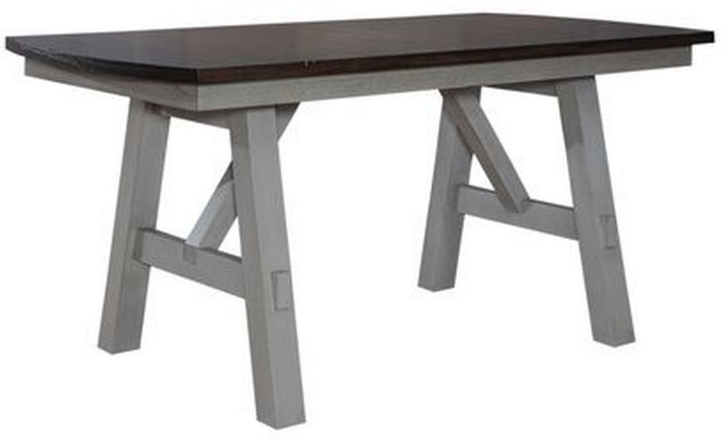 Feel at home with the Newport gathering table. Crafted with excellence using rubberwood solids and mindy veneers, this table features a Smokey Grey finish with a Carbon Grey top. The table has a fixed top with slightly rounded ends that adds dimension and design appeal, supported by splayed square block legs. Wooden peg accents on the legs add for a craftsman's feel. The center trestle on this table ensures stability. Feel comfortable and elegant at the same time with the Newport gathering table.