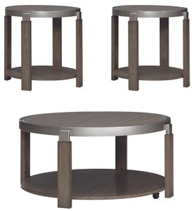 Elevate your living room with the Sutton 3 piece set. Expertly crafted using Poplar solids and Birch veneers with polished metal, this set features a Bleached Sand finish and includes the cocktail table and 2 end tables. At the heart of this set lies an inset wood top.Read More