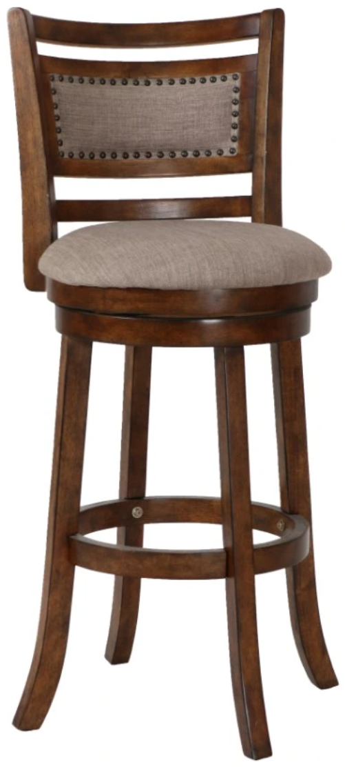 With a seat height of 29”, the full foam seat cushions and backrests, upholstered in easy-care light brown 100% polyester fabric, provide a plush and cozy seating experience. The distinctive style is highlighted by the neatly upholstered backrest featuring a traditional nailhead trim. Assembly is a breeze with the included instructions, and a one-year warranty ensures your satisfaction. Elevate your bar or kitchen island with the Aberdeen Bar Stool, where quality construction meets distinctive style.