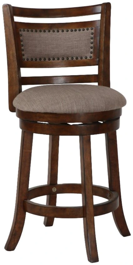 With a seat height of 24”, the full foam seat cushions and backrests, upholstered in easy-care light brown 100% polyester fabric, provide a plush and cozy seating experience. The distinctive style is highlighted by the neatly upholstered backrest featuring a traditional nailhead trim. Assembly is a breeze with the included instructions, and a one-year warranty ensures your satisfaction. Elevate your bar or kitchen island with the Aberdeen Bar Stool, where quality construction meets distinctive style.