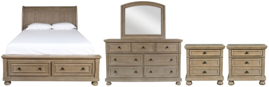 *Bed, dresser, mirror and two nightstand only, any other products that may be displayed are sold separately. Images may not represent the actual size and color in images may differ in person. See store for actual color or finish.