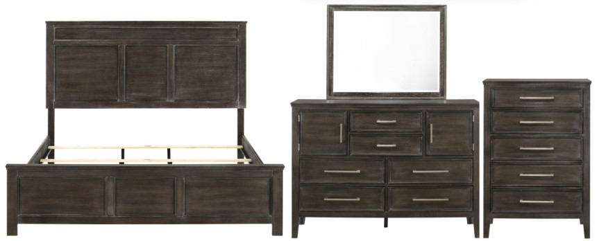 Set includes bed, chest, dresser and mirror