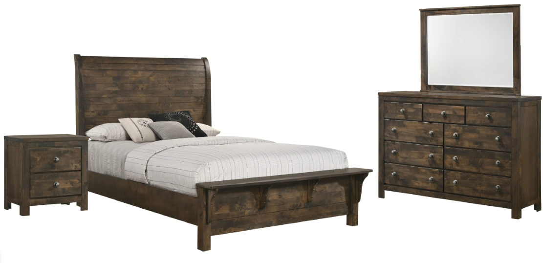 Set includes bed, dresser, mirror and nightstand