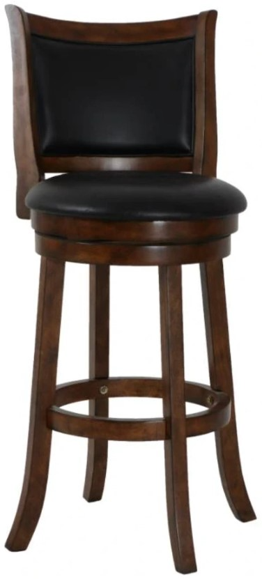 The circular footrest adds stability and functionality to the stool legs, while the 360-degree swivel feature allows for easy use at a kitchen island or bar. With a 29” seat height, the full foam seat cushions and backrest, upholstered in easy-care black PU fabric, provide a plush and cozy seating experience. The distinctive style is highlighted by the flared chair frame and thickly welted back cushions, evoking a classic barstool character. Assembly is a breeze with the included instructions, and a one-year warranty ensures your satisfaction. Elevate your bar or kitchen island with the Bristol Pub Height Swivel Bar Stool, where quality construction meets distinctive style.
