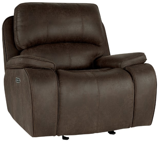 Unwind in luxury with the Brookings glider recliner with power headrest and footrest in rustic brown. Crafted with an upholstered leather-look polyester/PU fabric, this recliner boasts the elegance of genuine leather without the hefty price tag. Tailored to perfection, its pillowed arms and double stitched racetrack arms exude sophistication.Read More