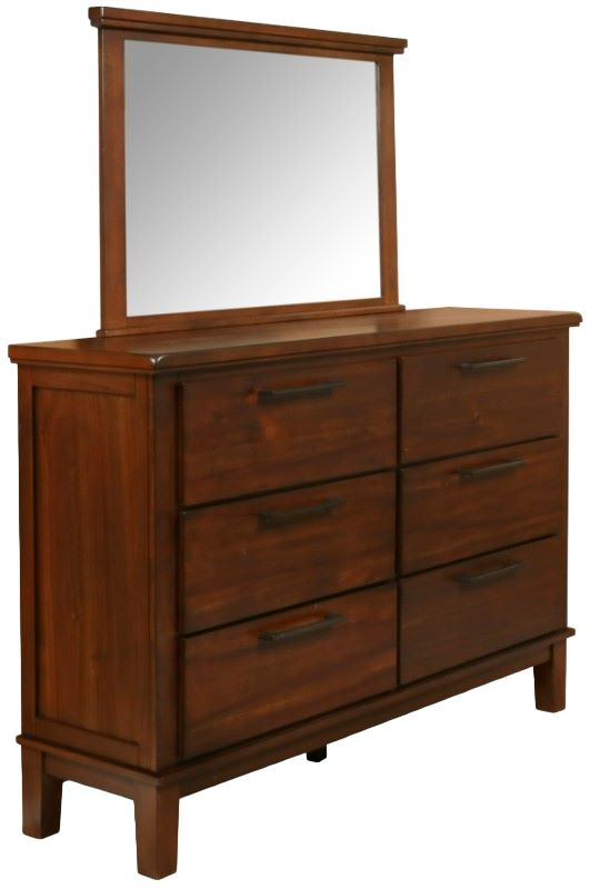 The Cagney Dresser and Mirror Set from New Classic® Home Furnishings offers timeless elegance with its rich chestnut finish and sleek design. Featuring spacious drawers with smooth glides and stylish hardware, it combines functionality and sophistication, enhancing any bedroom decor.Read More
