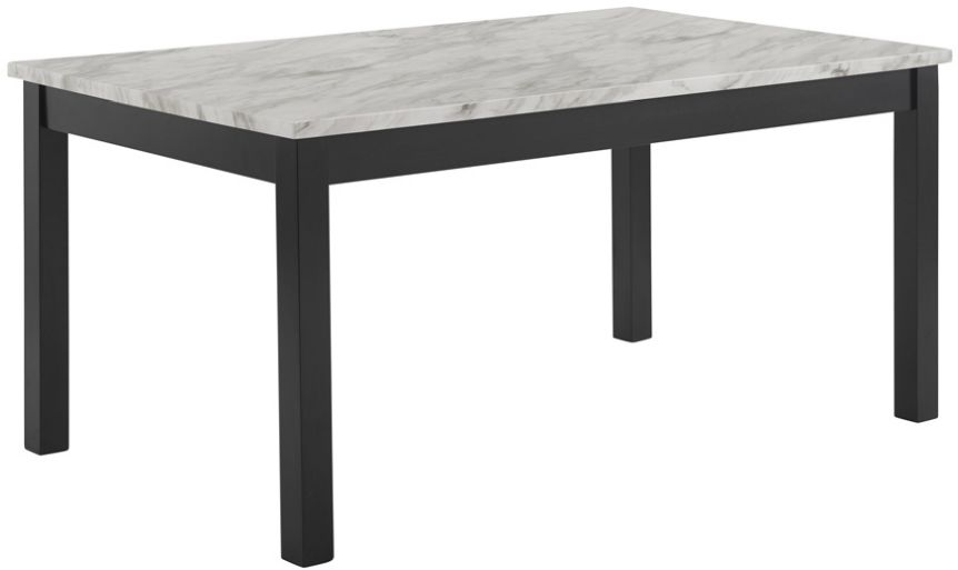 The Celeste 64" dining table adds a touch of glamour to your home. The faux marble top is a beautiful white and gray pattern that is set off by the black solid wood table frame. The top is heat and water-resistant, super easy to care for, and a statement-making design.Read More