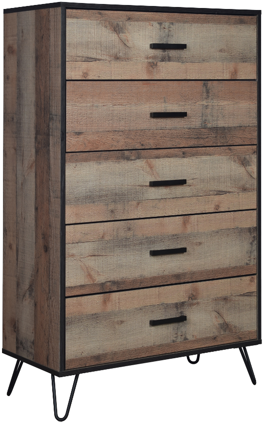 The Elk River 5-Drawer Chest embodies a perfect blend of industrial flair and functional design, making it an ideal addition to any bedroom seeking a touch of rustic sophistication. Crafted from manufactured woods with an environmentally conscious decorative laminate, this chest is not only sturdy but also eco-friendly.Read More