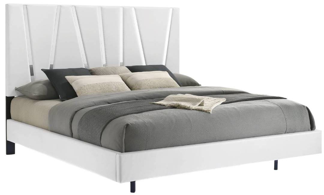 The Europa Panel Bed in white offers a perfect blend of modern elegance and quality craftsmanship. This set includes a panel headboard, footboard, two side rails, and four mattress support slats. Its design is achieved with a majestic headboard, glossy white finish, and modern mylar accents, creating a sophisticated look.Read More