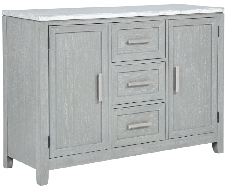 The Fiona dining collection in mist gray blends timeless style, durability, and comfort for today’s dining spaces. Crafted from solid rubberwood and engineered woods with oak-embossed laminate, it features a rectangular table with a genuine white marble inlay that extends to seat up to 8 guests.Read More