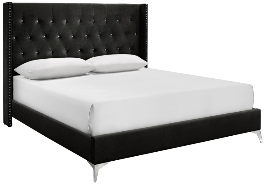 Contemporary Glam: The Huxley has clean lines enhanced with a crystal button tufted headboard with silver studded trim for a touch of luxury and comfort