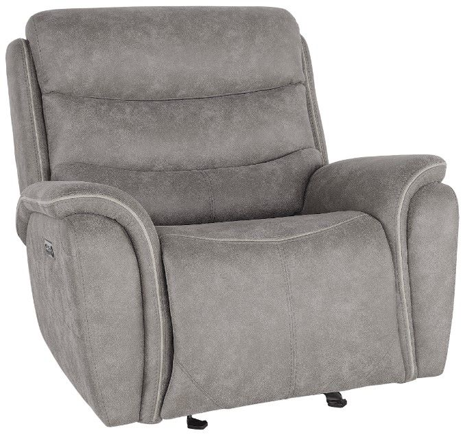 Experience unparalleled comfort and luxury with the Kamari glider recliner with power headrest and footrest in gray. Crafted from a blend of polyester and PU fabric, its suede-like upholstery offers a sumptuously soft feel and easy care. Tailored with triple roll backs and wrap-around arms, this recliner exudes sophistication.Read More
