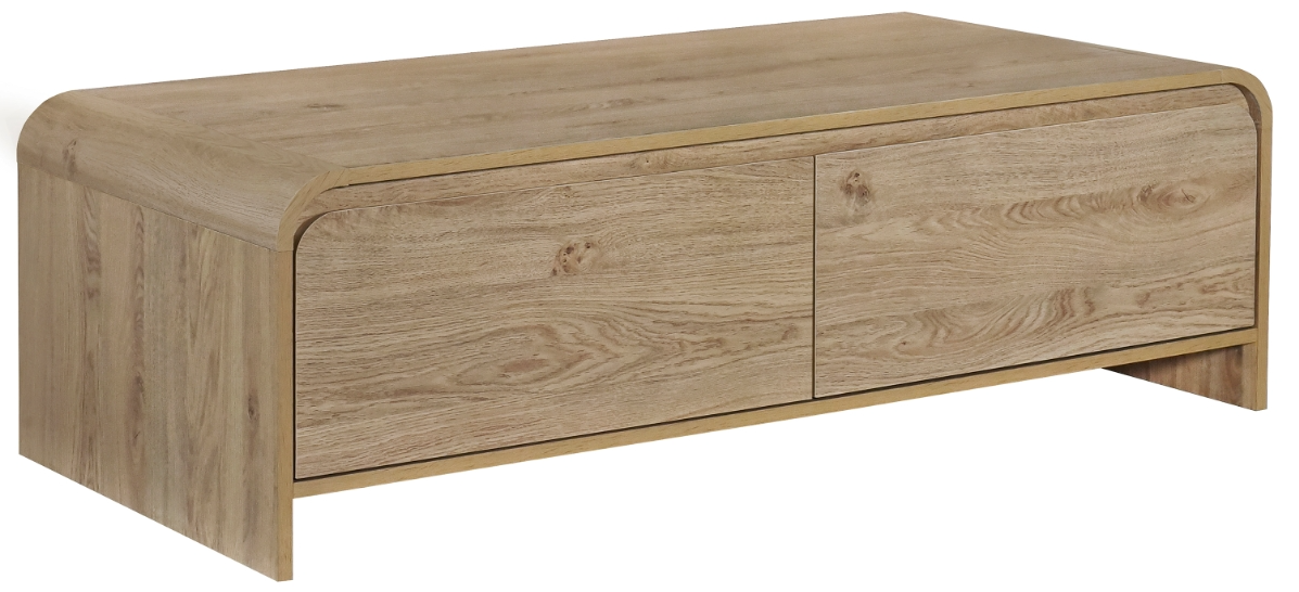 Discover the Mara storage cocktail table, a blend of sturdy construction and eco-friendly materials. Crafted from durable manufactured wood and adorned with environmentally friendly laminate, this table boasts both sustainability and style. With its ample 47" surface area, it offers space for drinks and décor, while two spacious drawers provide convenient storage.Read More