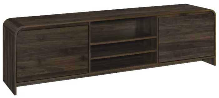 Introducing the Mara 70" TV console in walnut, a perfect blend of style and sustainability for your entertainment needs. Crafted from sturdy manufactured wood and coated in environmentally friendly laminate, this console boasts both durability and eco-consciousness. Its ample top surface accommodates large screen televisions, while shelves offer space for entertainment components.Read More