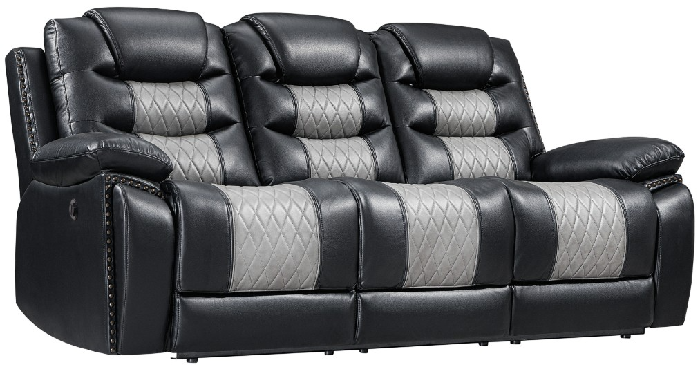 Experience luxurious comfort with resilient foam cushions and pocket coil seating, offering a cozy lounging experience. The soft, two-tone black and gray fabric, made from 80% polyester and 20% PU, provides the touch and feel of leather while remaining breathable. Distinctive details such as nailhead trim, diamond stitch pattern seats, and double wrapped headrests add elegance to any home. Enjoy lifestyle features like the drop-down snack tray with beverage holders in the sofa, extra storage in the console loveseat, and hidden pull-out cupholders in the arms. In the power version, keep your devices charged up with convenient USB ports and find your perfect recline position at the touch of a power button. Plush pillowed arm and headrests, reclining backs, and comfortable footrests create the ultimate relaxation spot. The glider recliner offers soothing, gentle gliding action for added comfort. The Nikko motion upholstery set is the ideal blend of style, comfort, and modern convenience.