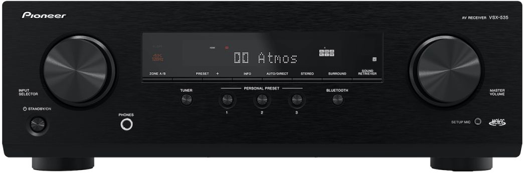 Engineered with the newest technology for streamers and home theater buffs, the VSX-535 supports Dolby Atmos® capabilities, 8K/4K Ultra HD, Bluetooth® streaming and more. Elevate your shows, games and films with amazing performance in speaker configurations up to a 5.2 or 3.2.2 setup, perfectly calibrated to your space with our proprietary MCACC Auto Room Tuning software.