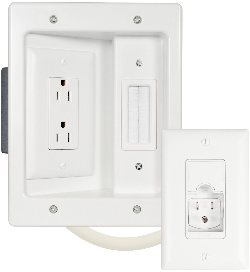 Extend power from an existing wall outlet to behind a wall mounted TV without modifying current electrical wiring. Provide power to more than the TV - receptacles support many plug types, including right angle plugs. The In-Wall TV Power and Cable Management Kit is compatible with any TV brand and easily expandable.Read More
