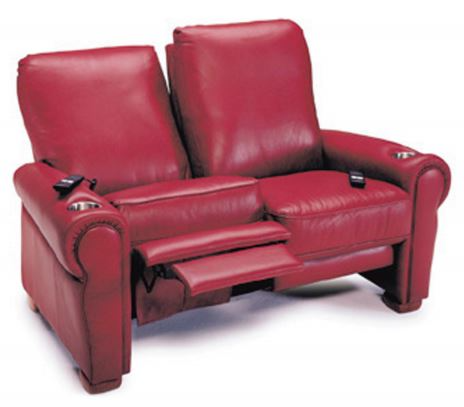 United Leather USA Home Theater Seating with rolled arms and dark wooden legsRead More